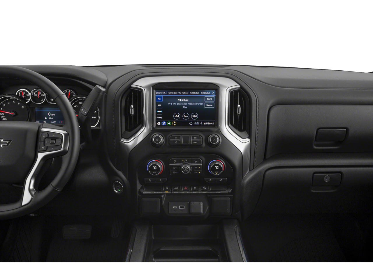 10-Way Power Driver Seat w/Lumbar, 12-Volt Rear Auxiliary Power Outlet, 170 Amp Alternator, 2 USB Ports (First Row), 3.23 Rear Axle Ratio, 4-Wheel Disc Brakes, 4.2 Diagonal Color Display Driver Info Center, 6 Speakers, 6-Speaker Audio System, ABS brakes, Air Conditioning, All-Weather Floor Liner (LPO) (AAK), Alloy wheels, AM/FM radio: SiriusXM, Apple CarPlay/Android Auto, Auto-Locking Rear Differential, Automatic temperature control, Auxiliary External Transmission Oil Cooler, Bluetooth® For Phone, Brake assist, Chevrolet Connected Access Capable, Cloth Rear Seat w/Storage Package, Cloth Seat Trim, Color-Keyed Carpeting Floor Covering, Compass, Convenience Package w/Buckets Seats, Deep-Tinted Glass, Delay-off headlights, Driver door bin, Driver vanity mirror, Dual Exhaust w/Polished Outlets, Dual front impact airbags, Dual front side impact airbags, Dual-Zone Automatic Climate Control, Electric Rear-Window Defogger, Electronic Cruise Control, Electronic Stability Control, EZ Lift Power Lock & Release Tailgate, Floor Mounted Center Console, Front anti-roll bar, Front Bucket Seats, Front Center Armrest, Front dual zone A/C, Front fog lights, Front LED Fog Lamps, Front License Plate Kit, Front reading lights, Front wheel independent suspension, Fully automatic headlights, Heated door mirrors, Heated Driver & Front Outboard Passenger Seats, Heated front seats, Heated Steering Wheel, Heated steering wheel, Heavy-Duty Air Filter, High Gloss Black Grille, High Gloss Black Mirror Caps, Hill Descent Control, Hitch Guidance, Illuminated entry, Keyless Open & Start, Leather Wrapped Steering Wheel, LED Cargo Area Lighting, LED Reflector Headlamps, Low tire pressure warning, Manual Tilt/Telescoping Steering Column, Not Equipped w/Automatic Stop/Start, Not Equipped w/Heated/Ventilated Front Seats, Occupant sensing airbag, Off-Road Suspension w/2 Lift, OnStar & Chevrolet Connected Services Capable, Outside temperature display, Overhead airbag, Overhead console, Panic alarm, Passenger door bin, Passenger vanity mirror, Performance Red Recovery Hooks, Power Door Locks, Power door mirrors, Power driver seat, Power Front Windows w/Driver Express Up/Down, Power Front Windows w/Passenger Express Down, Power Rear Windows w/Express Down, Power steering, Power windows, Preferred Equipment Group 2LT, Premium audio system: Chevrolet Infotainment 3, Radio data system, Radio: Chevrolet Infotainment 3 System, Rear Dual USB Charging-Only Ports, Rear reading lights, Rear seat center armrest, Rear step bumper, Rear Vision Camera, Rear window defroster, Remote keyless entry, Remote Vehicle Starter System, Security system, SiriusXM Radio, Speed control, Speed-sensing steering, Split folding rear seat, Standard Tailgate, Steering Wheel Audio Controls, Steering wheel mounted audio controls, Suspension Package, Tachometer, Telescoping steering wheel, Theft Deterrent System (Unauthorized Entry), Tilt steering wheel, Traction control, Trailering Package, Trip computer, Variably intermittent wipers, Voltmeter, Wheels: 18 x 8.5 Black Painted Aluminum, Wi-Fi Hot Spot Capable. Satin Steel Metallic EcoTec3 5.3L V8